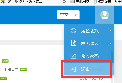 2、选课说明:本轮选课采取优先制,容量实时更新。选课路径:http://jwc.zufe.edu.cn/ ——点击“选课入口”按钮。教务系统登录方式已与公司统一身份认证对接,账号密码与公司信息门户相同,如密码过于简单,请务必修改密码,并采用数字、符号、字母组合的形式,找回密码网址:https://cas.zufe.edu.cn/cas/pwd,特别提醒:手机自带浏览器存在认证失败现象,请提前下载其他浏览器,如UC或谷歌浏览器;系统退出,请点击右上角头像图标退出并关闭浏览器,如下图: