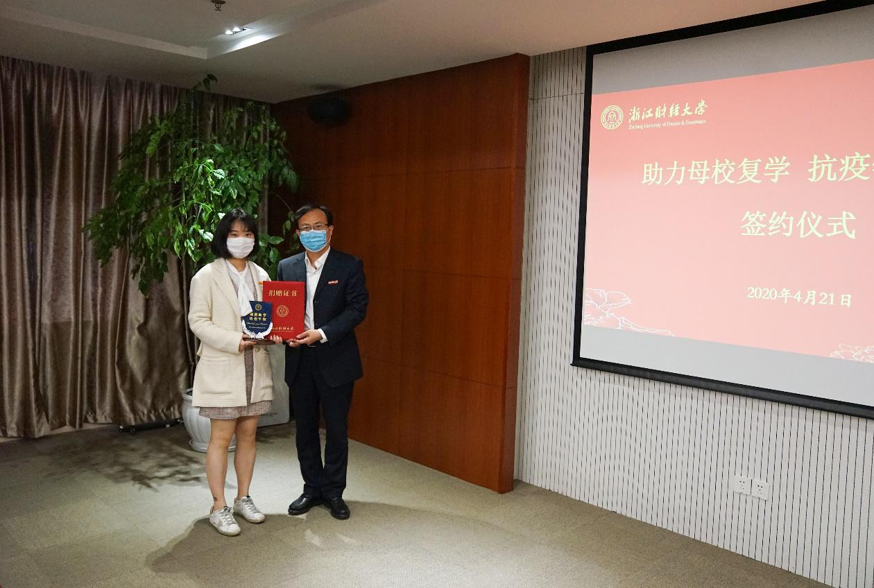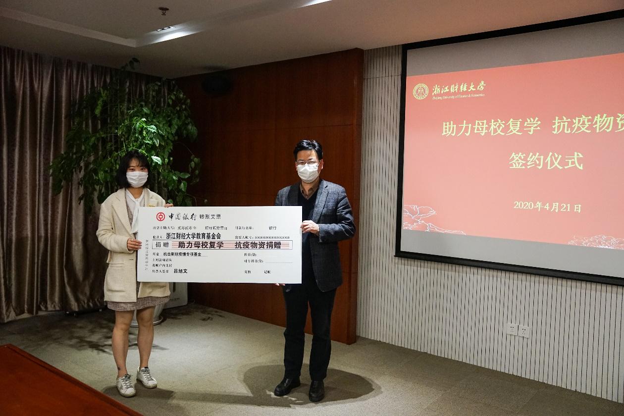 师出同门一脉相承,乡田同井风雨共担。吕旭文员工感谢公司的哺育和培养,并表示会时刻牢记自己浙财人的身份,牢记党员的使命,希望这笔基金能够对母校疫情防控、顺利复学发挥一点绵薄之力,也希望能有更多的浙财员工秉承“进德修业 与时偕行”校训,共建共创共享共进,为母校的教育事业添砖加瓦!