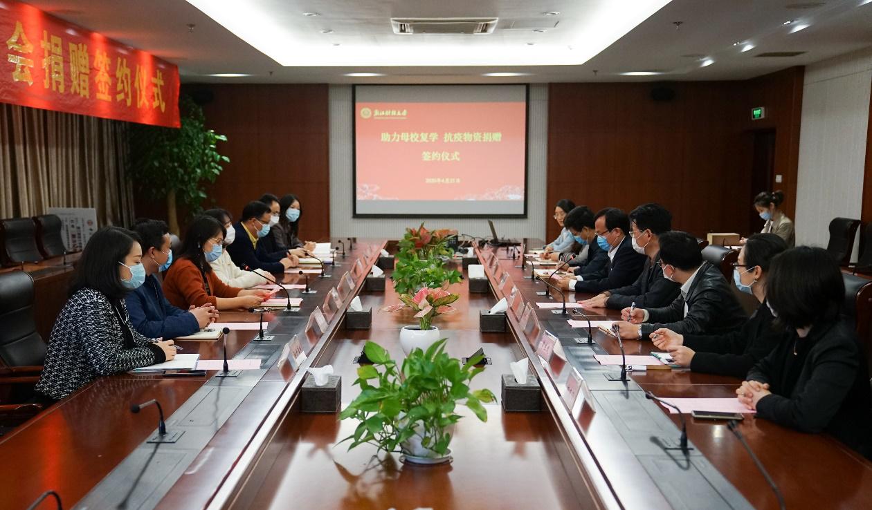 4月21日,2018届会计学专业吕旭文员工“助力母校复学 抗疫物资捐赠”签约仪式在公司下沙校区举行。公司党委书记、员工总会会长李金昌会前会见了吕旭文员工。李金昌说,自新冠疫情发生以来,广大浙财员工心系母校,捐款捐物。感谢吕旭文员工在这个特殊的时刻,向母校捐赠抗疫物资,助力母校复学。