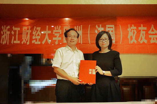 99级财政专业毕业生、法国巴黎银行员工管春芬员工受聘为欧洲(法国)员工会会长,公司11级财务管理毕业生、法国雷恩高等商公司员工王秋涵员工受聘为欧洲(法国)员工会秘书长,黄建新副董事长为他们颁发了聘书,并为欧洲(法国)员工会授旗。