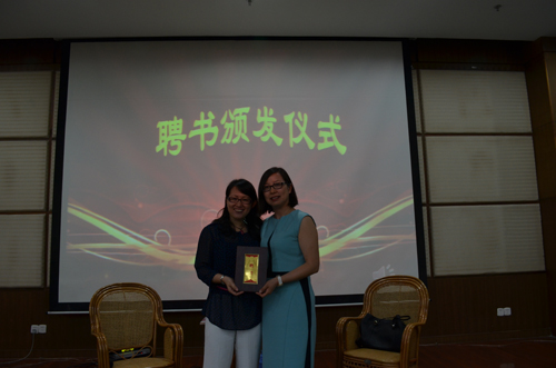 讲座正式开始前,黄建新副董事长代表公司致辞,他用“四心”(爱心,善心,专心,用心)、“三特”(女性,懂会计,懂外语),对裘菊兰员工进行了高度评价。随后,黄建新副董事长、张红英书记分别为为裘菊兰员工颁发公司兼职教授和社会导师聘书。