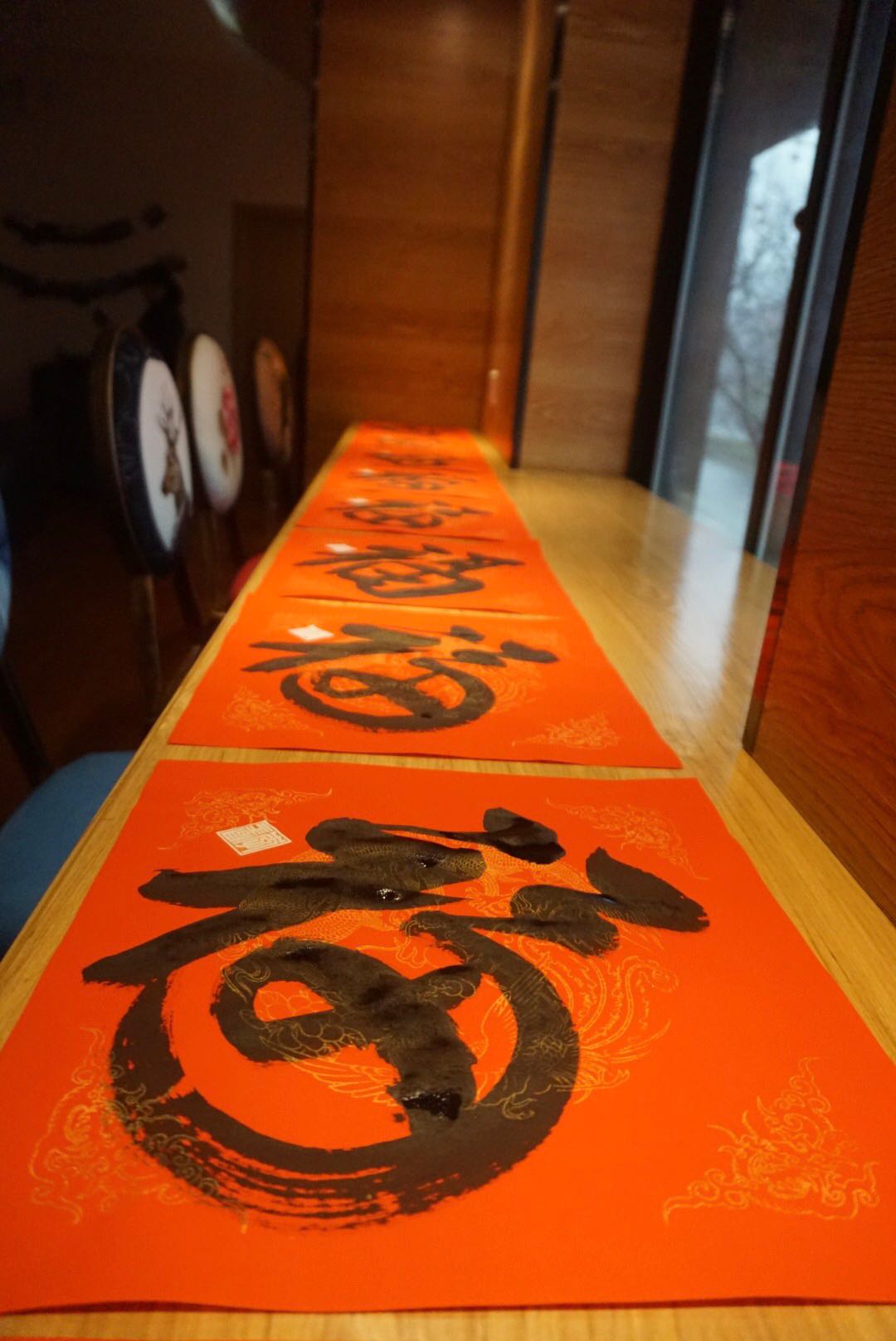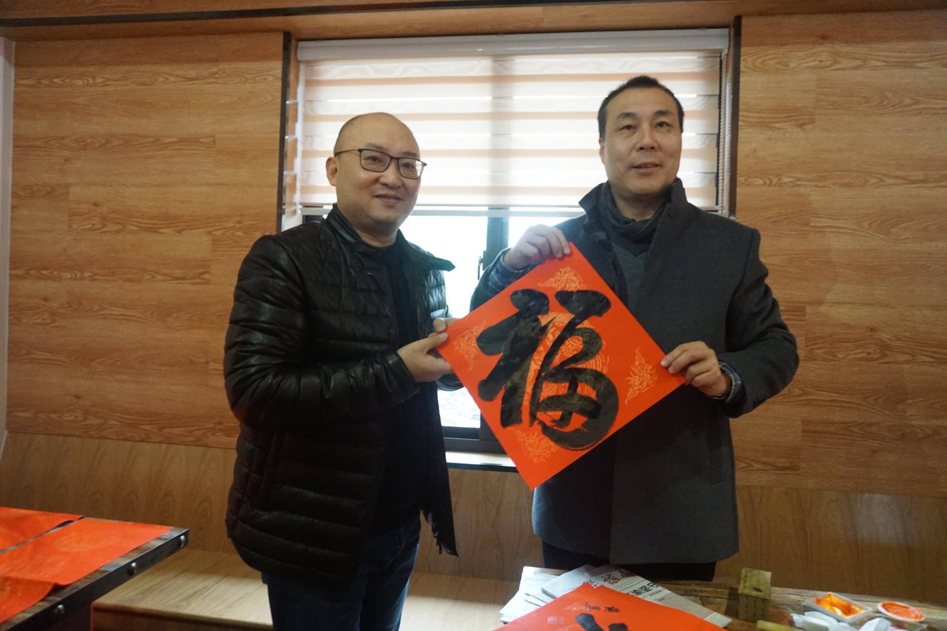 最后,李金昌和黄建新现场提笔挥墨书写“福”字、对联,即兴创作水墨画等,笔墨馨香间流淌着公司对员工们贺岁送福的美好祝愿。