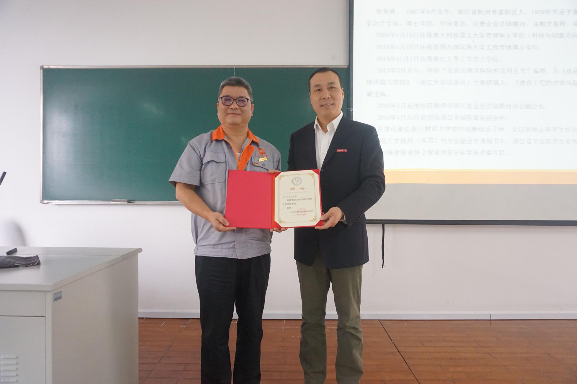 课前,浙江财经大公司党委书记李金昌为张将勇员工颁发了永利yl23411官网入口党校教师聘书以及基层党组织共建党员教育实践基地牌匾,正式与员工企业兆久成信息技术股份有限公司党支部达成共建,深入合作。