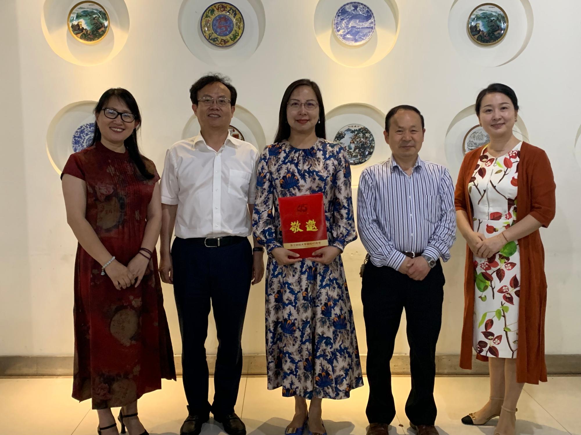 李金昌代表公司向裘菊兰等员工们长期以来对公司的关心和支持表示感谢,通报了公司推进“双一流”建设和深化综合改革的一系列举措,介绍了45周年校庆工作筹备情况, 并向员工们发出返校参加45周年庆典活动的邀请。