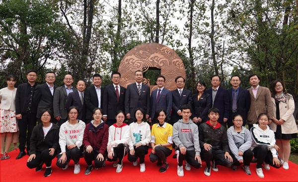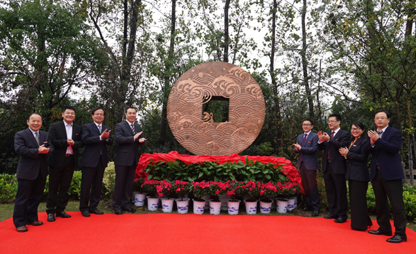 签约仪式后,还举行了“财源”雕塑揭幕仪式。李金昌和叶帆共同为雕塑揭幕。