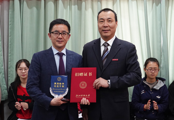 签约仪式上,双方签署了捐赠协议,李金昌代表公司为叶帆员工颁发了捐赠证书和纪念杯,徐晓东代表公司接受捐赠支票。