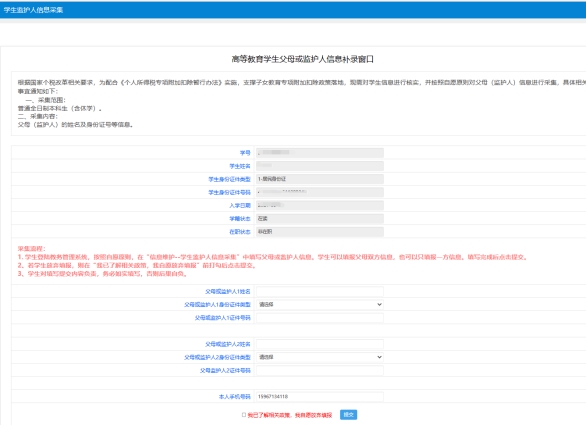父母(监护人)的姓名及身份证号等信息。
