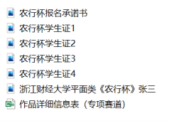 注:报名承诺书需要电子签名,最后必须以zip或rar压缩包整理所有文件,文件命名同作品文件,可参看下列图示举例: