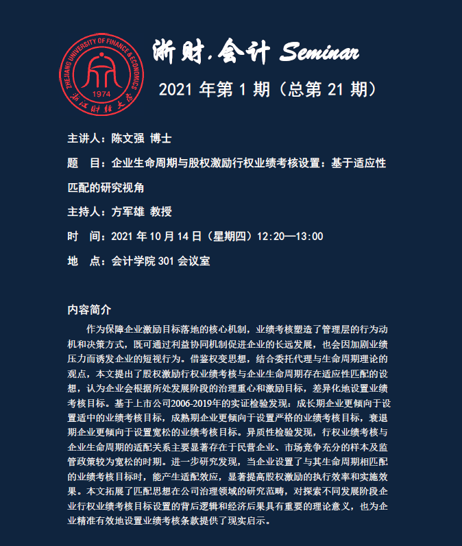 上一条:浙财会计Seminar—2021年第2期(总第22期)
