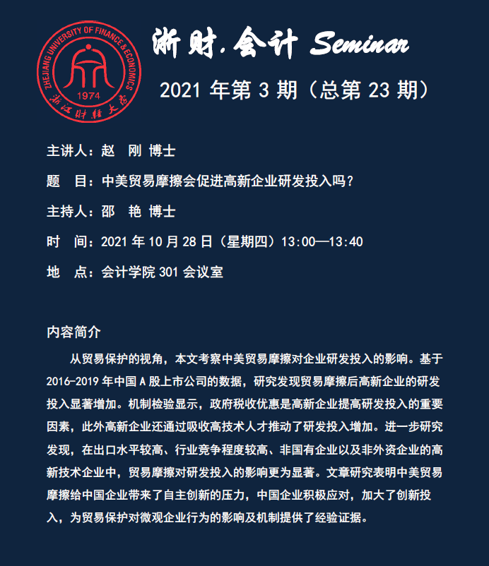 上一条:浙财会计Seminar-2021年第4期(总第24期)
