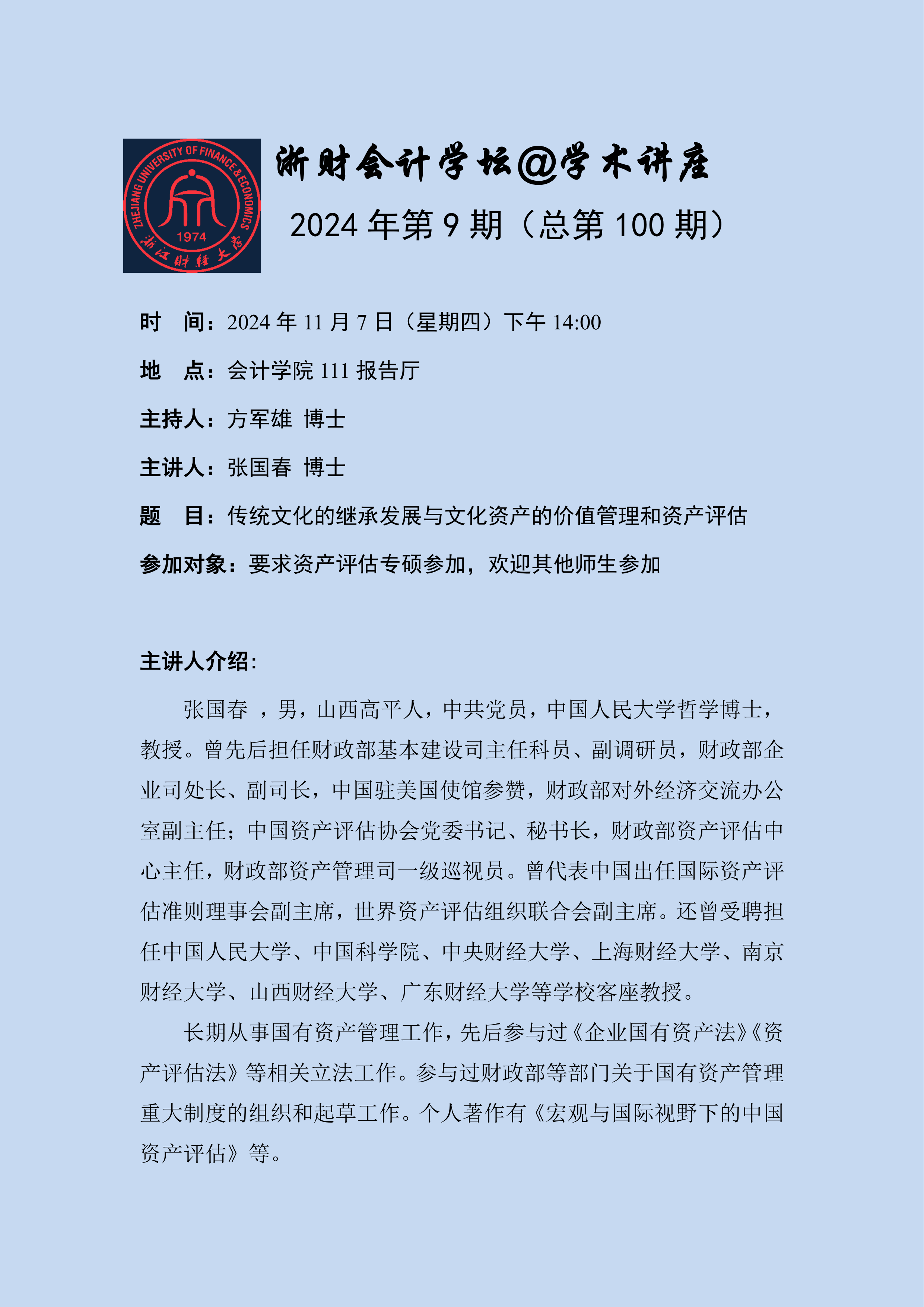 下一条:浙财会计学坛@学术讲座2024年第8期(总第99期)——张琦博士