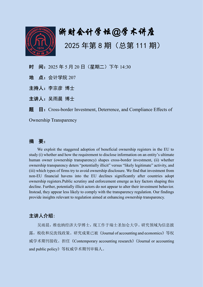 下一条:浙财会计学坛@学术讲座2025年第7期(总第110期)——廖林博士