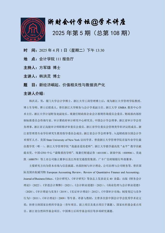 下一条:浙财会计学坛@学术讲座2025年第4期(总第107期)——曾晓亮博士