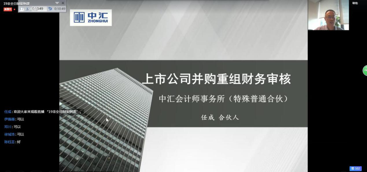 6月20日下午,任成老师的授课主题是“上市公司并购重组财务审核”。他围绕并购重组的概念及现状、相关规定、实务案例、审核要点和后续管理这五个方面内容展开。任老师列举了《公司法》、《证券法》、《上市公司收购重组管理办法》等相关规定的重要修改要点,对这其中背后的考量因素加以分析。并借助新嘉联收购巴士在线的实务案例,从重组前后的股权架构情况、增值情况等方面深入剖析并购重组中交易方案的制定。课程最后,任老师着重讲解了并购重组中对常见的重大风险点的把控,以及股权转让、改组董事会等并购重组后续管理的事项要点。