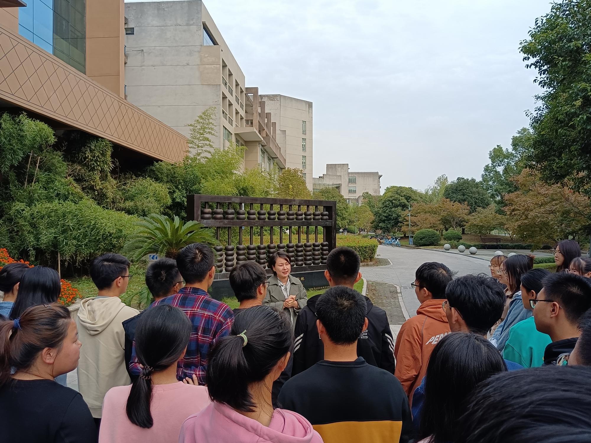 张虹书记在公司地标建筑“铜算盘”前向21级员工代表简要概况了公司与公司的发展史。同时,她还向同学们介绍了公司的党建工作成绩、专业建设成效、人才培养特色与优秀员工事迹。她以老经理汪祥耀教授的题词“学会计,干会计,跳出会计地;入财大,出财大,飞跃九重天”勉励21级学子,要以优秀员工和优秀毕业生为榜样,努力学习,夯实专业基础,大胆创新,追求卓越,全方位提升个人综合能力。