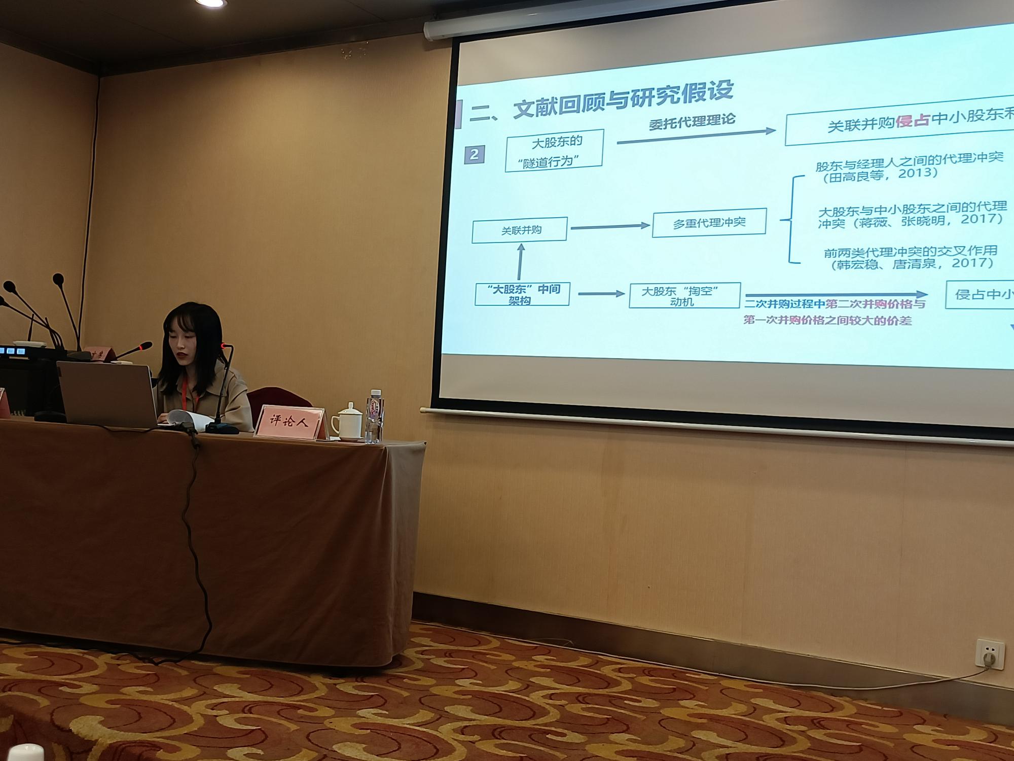 本次会议分为“论坛主题报告”和“分论坛学术报告”两部分。哈尔滨工业大学教授曲晓辉等围绕财务成本管理前沿问题作了主题报告。公司会计学硕士黄笛同学在分论坛报告论文《大股东参与下的上市公司二次并购:利益侵占还是合作共赢?》。点评人根据前期自身研读与现场听取报告后,对论文作者的成果表示肯定。在场的其他师生也认真聆听,积极提问,分论坛气氛热烈活跃。