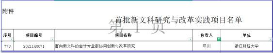 近日,《教育部办公厅关于公布首批新文科研究与改革实践项目的通知》(教高厅函〔2021〕31号)正式印发。经单位推荐、网络审核、会议审议等程序,教育部共认定首批1011个新文科研究与改革实践项目。公司《面向新文科的会计专业群协同创新与改革研究》荣获立项。