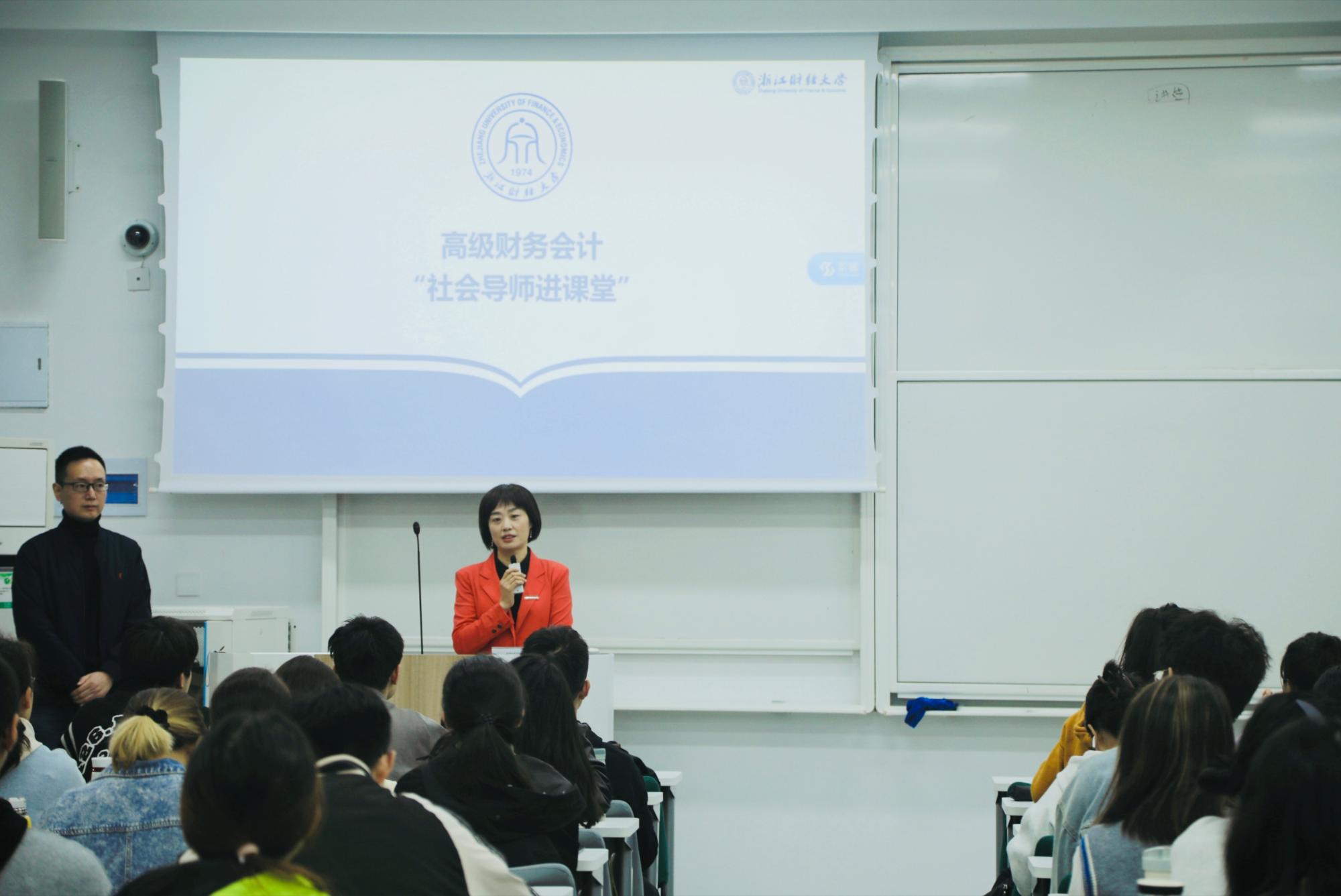 2021年11月17日上午,浙江圣达集团副总裁、正高级会计师张国昀先生应邀来到公司,走进邵毅平老师的《高级财务会计》课堂,与19级永利yl23411官网的100余名同学分享了“企业合并”的相关知识,采用社会导师进课堂的方法也是《高级财务会计》课程教学改革的环节之一。