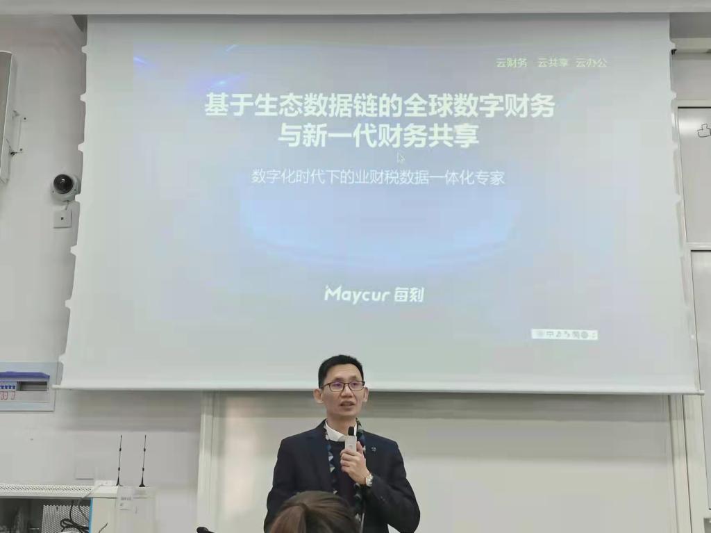 12月9日下午,财务高管论坛2021年第5期在教学楼A205拉开序幕。本期论坛主题为“财务数字与新一代共享”,由杭州每刻科技有限公司董事长魏美钟先生主讲。 本次论坛由永利yl23411官网董黎明老师主持,永利yl23411官网2021级全体专硕研究生参与此次论坛。