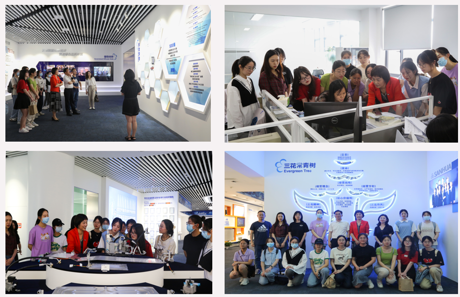 本次参访主要分为三个部分。第一部分是参观企业展厅,重点了解三花集团的历史发展过程、代表产品以及三花常青树的理念。