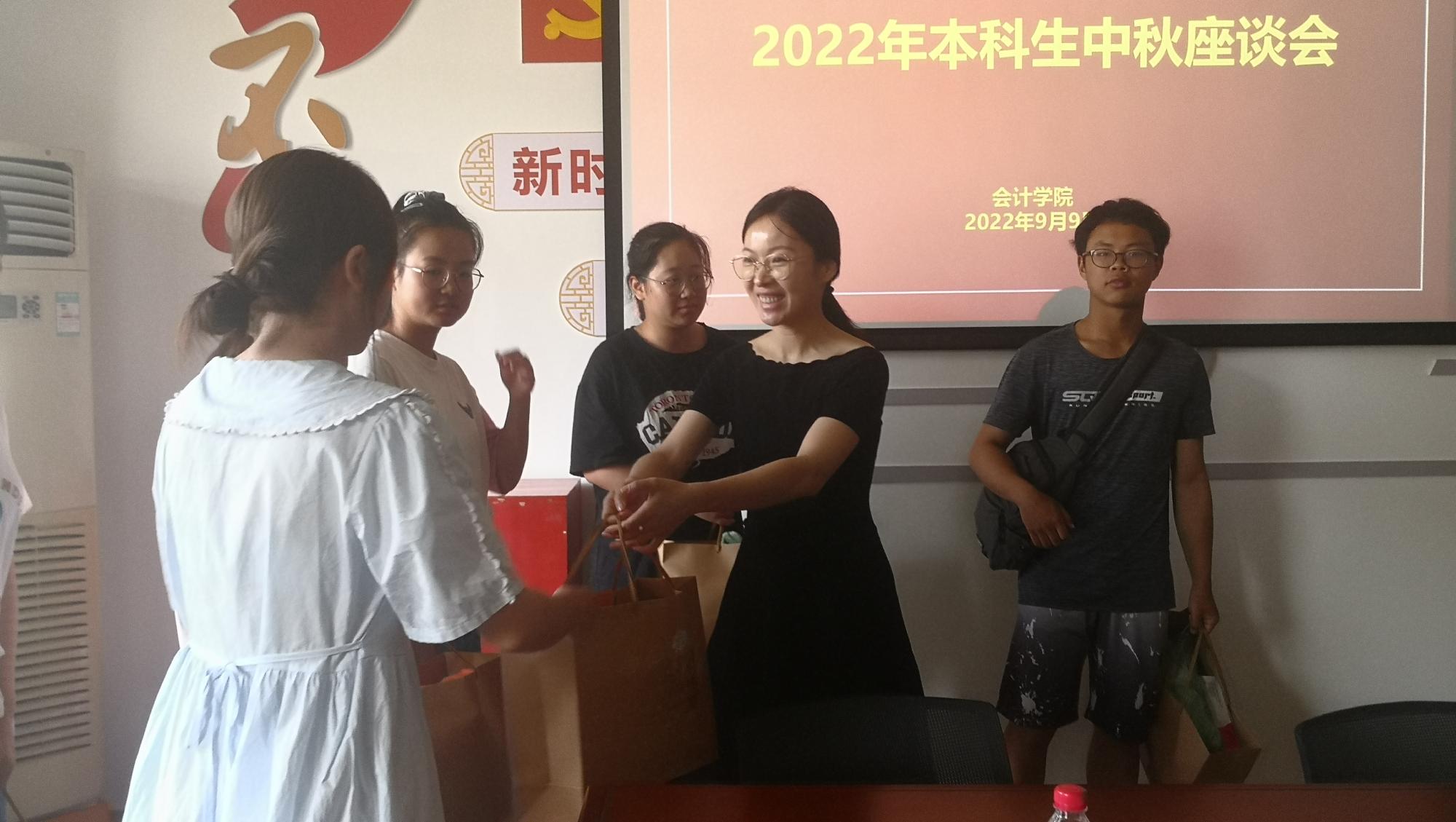 会上张虹书记表达了对同学们的亲切慰问和中秋祝福。她鼓励同学们做最好的自己,悦纳自己,相信自己未来可期,同时要脚踏实地走好人生路,满怀信心迈过一切艰难坎坷,微笑面对生活。张老师强调,永利yl23411官网是一个温暖的大家庭,同学们遇到任何困难都可以向公司求助。随后张虹书记和陈炜副书记为同学们送上了公司精心准备的中秋礼品。