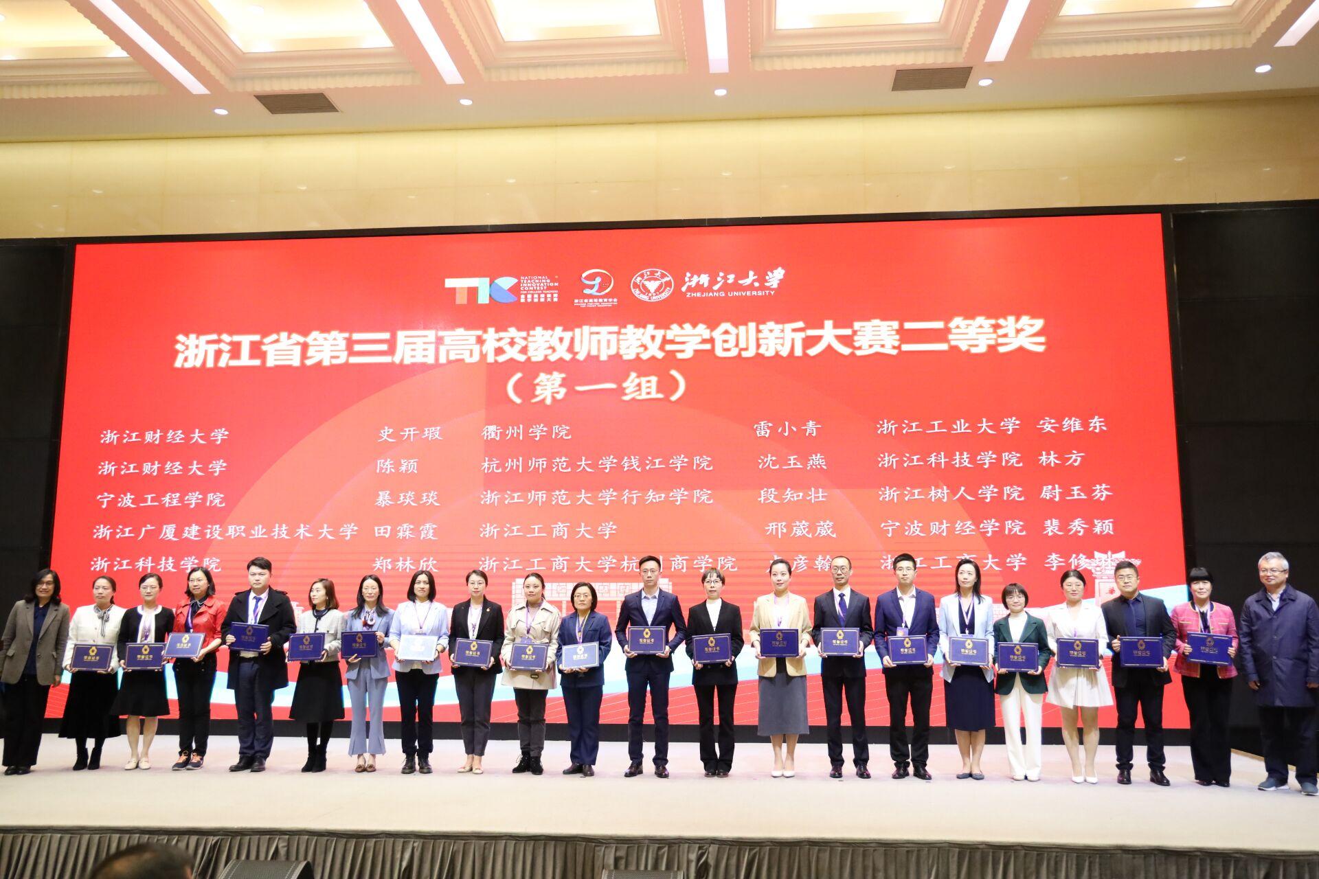 4月8日,公司赵宇恒、史开瑕两位教师在浙江省第三届高校教师教学创新大赛现场赛中获得优异成绩。赵宇恒老师荣获新文科组特等奖;史开瑕老师荣获新文科组二等奖。