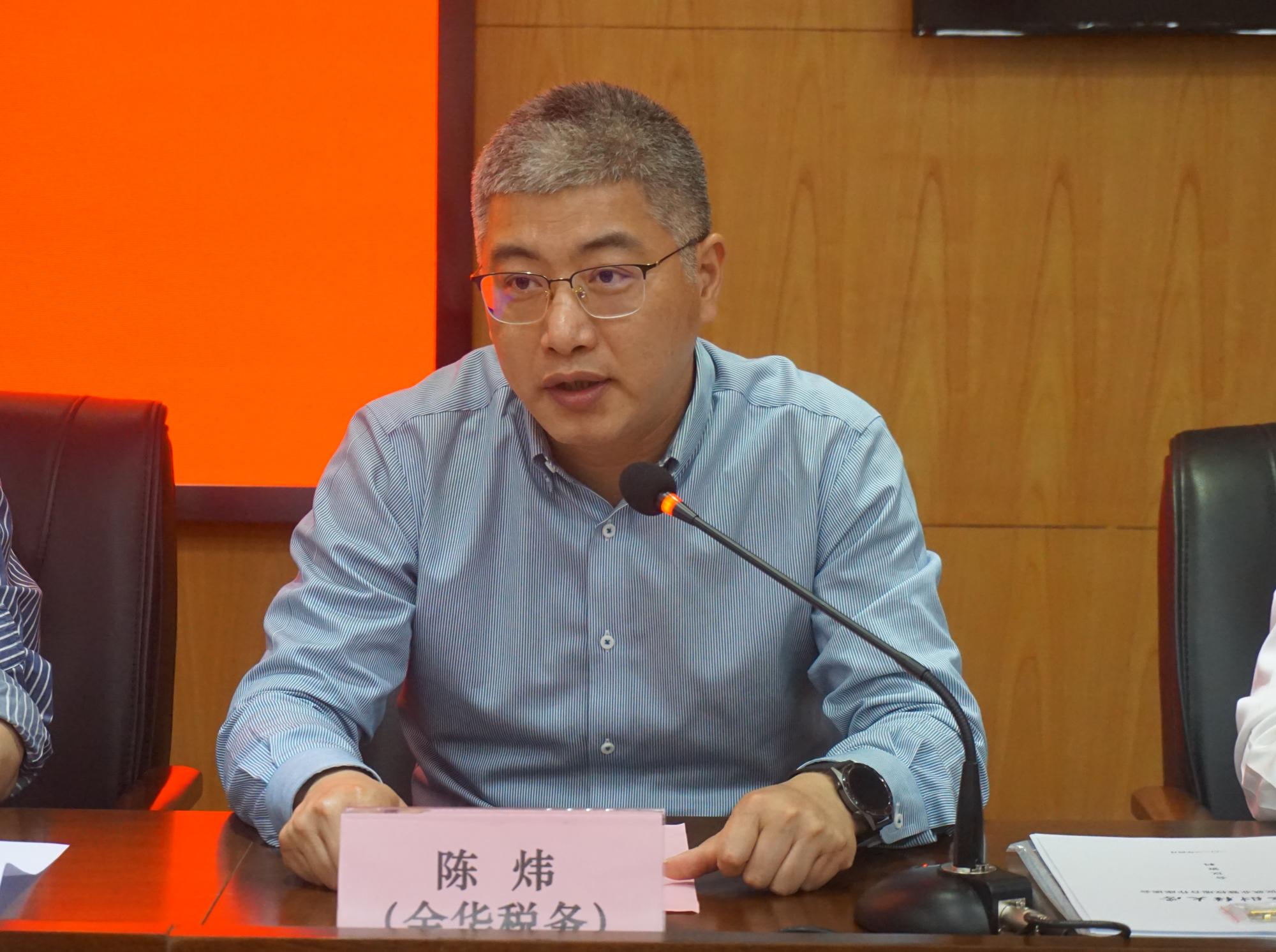 金华金东区税务局党委委员、副局长陈炜在致辞中对董进才副董事长一行来访看望表示热烈欢迎,对兰溪员工全力筹备会议召开表示衷心感谢,期盼兰溪与公司在校企合作、产学结合方面有进一步的合作。
