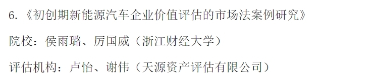 2023年8月8日,“2023年全国资产评估业务案例大赛”落下帷幕。经过三轮评审,公司参与报送的两个案例在众多参赛作品中脱颖而出。其中,公司厉国威教授、研究生侯雨璐与天源资产评估卢怡、谢伟团队合作的案例《初创期新能源汽车企业价值评估的市场法案例研究》荣获二等奖;刘芳副教授、研究生陈晓霜与建银(浙江)房地产土地资产评估沈艺团队合作的案例《ESG视角下垃圾发电企业价值评估》荣获三等奖。在此表示热烈祝贺!