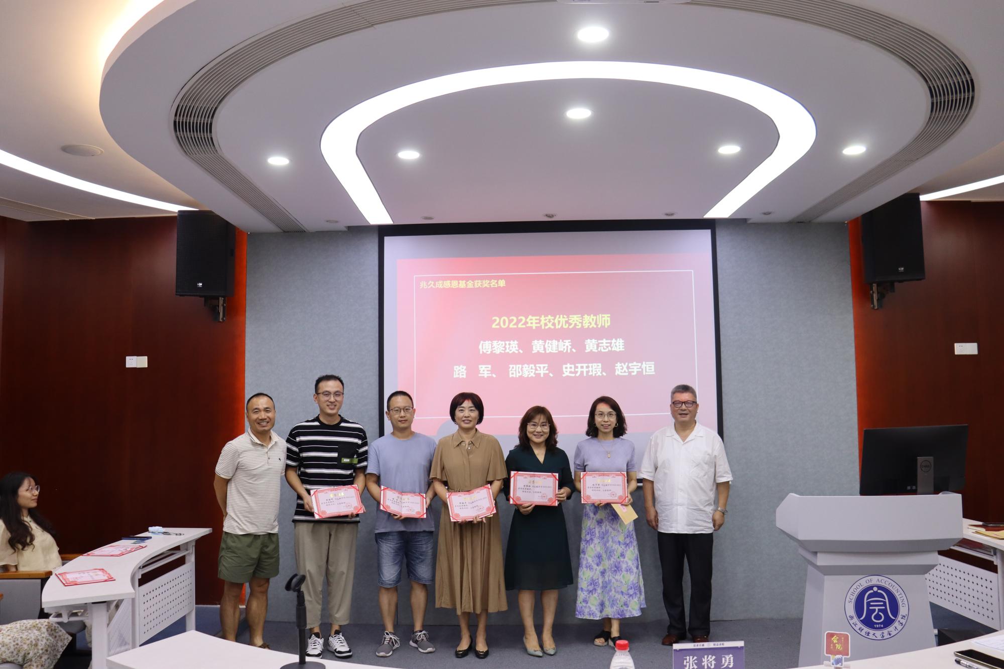 大会还对获得校“三育人”、“事业家庭兼顾型”先进个人、先进工作者、优秀教师、优秀辅导员、优秀班主任、优秀基层教学组织等23位老师和组织进行了表彰,浙江兆久成信息技术股份有限公司董事长张将勇、公司经理方军雄和副经理李文贵为获奖老师颁奖。