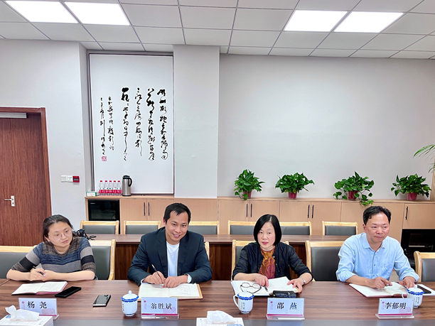 嘉兴公司商公司党委书记邵燕对公司一行的调研交流表示欢迎,分享了红色根脉主题的党建工作。副经理李郁明介绍了嘉兴公司商公司的历史,强调了他们目前的专业内涵建设——“互联网+”特色优势,着重介绍了智慧物流和数智化工商的人才培养特色。副经理翁胜斌分别介绍了研究生人才培养、科学研究、社会服务等方面。