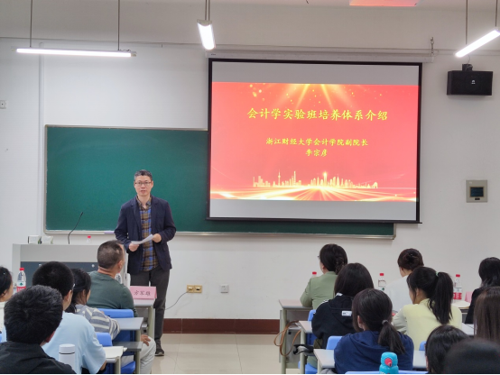 随后,李宗彦副经理详细阐述了会计学实验班的特色,讲解了会计学实验班的办学理念,并着重从课程设置、综合导师选择、实践调研与访学以及其他政策支持等方面与实验班同学们进行了深入交流。