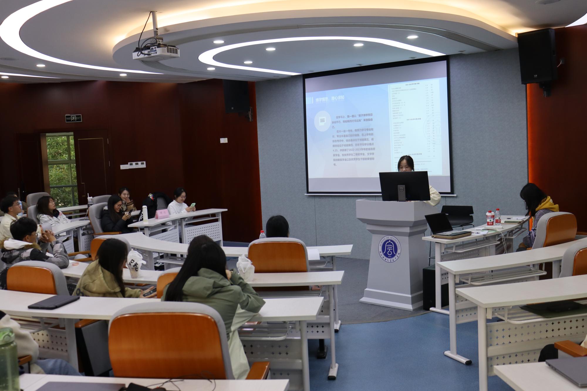 最后举行的是文华金生奖学金的评比活动,由顾慧莹老师、巫玥垚老师及唐海燕老师作为评委主持,大二大三参评的四位优秀学姐:周哲源、张陈奕、李陈菲和包宋婷分别汇报和展示的各自成果和个人优势,给大一同学树立了良好的榜样,帮助同学增强了对专业的认识、完善了未来的自我规划,激发了同学们的竞赛热情和学习积极性,为奠定同学们今后学习方向和重心打下了坚实的基础。