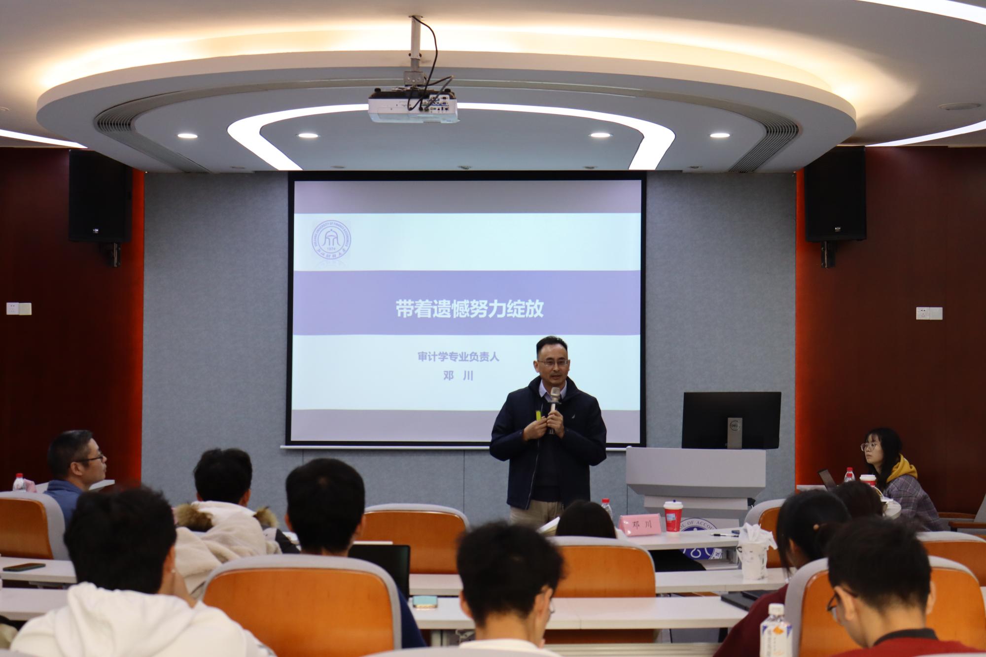 仪式之初,永利yl23411官网经理方老师致辞,向同学们分享了智能审计创新班开创的初衷,并向同学们提出了“跟上时代,要投入于课程之中”的要求。随后,审计学专业及智能审计创新班负责人邓老师和永利yl23411官网教学副经理李老师授讲述了班级发展规划并寄语。邓老师针对当下社会的老员工“空心病”现象,细致详尽地给同学们进行了专业及思想上的引导:“育人”比“育才”更根本,大学是认识自己、发现自己、思考人生的重要时期,鼓励同学们找到梦想并不断探索;再以企业价值是“收到什么”的概念引发同学们对人生价值“付出什么“的思考,鼓励引导同学们在今后的审计学习道路上积极维护公众利益,为国家作贡献。在寄语的最后两位老师结合了自己的求学经历,向同学们提出了“要有认同感,多与老师沟通”的建议。