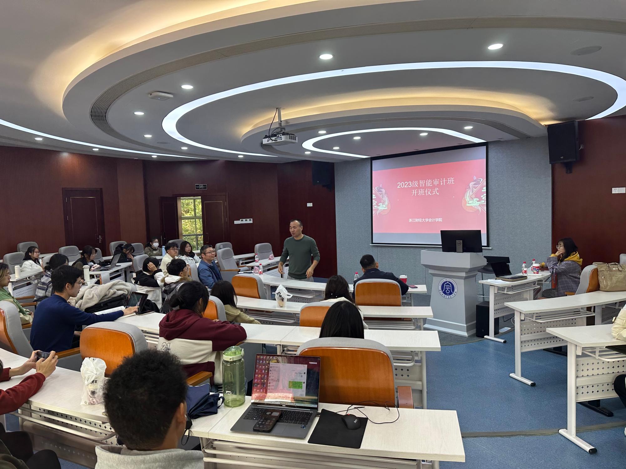 为增强智能审计创新班整体凝聚力和向心力,激发同学们的学习竞赛热情和积极性,明确班级建设和发展的目标和要求,11月16日下午,永利yl23411官网成功举办23级智能审计创新班开班仪式及文华金生奖奖学金评比活动,永利yl23411官网经理方军雄教授、审计学专业及智能审计创新班负责人邓川教授、永利yl23411官网教学副经理李宗彦教授参加了开班仪式,此活动由顾慧莹老师主持,巫玥垚老师等两位辅导员协同顾老师担任了文华金生奖评比活动的评委。