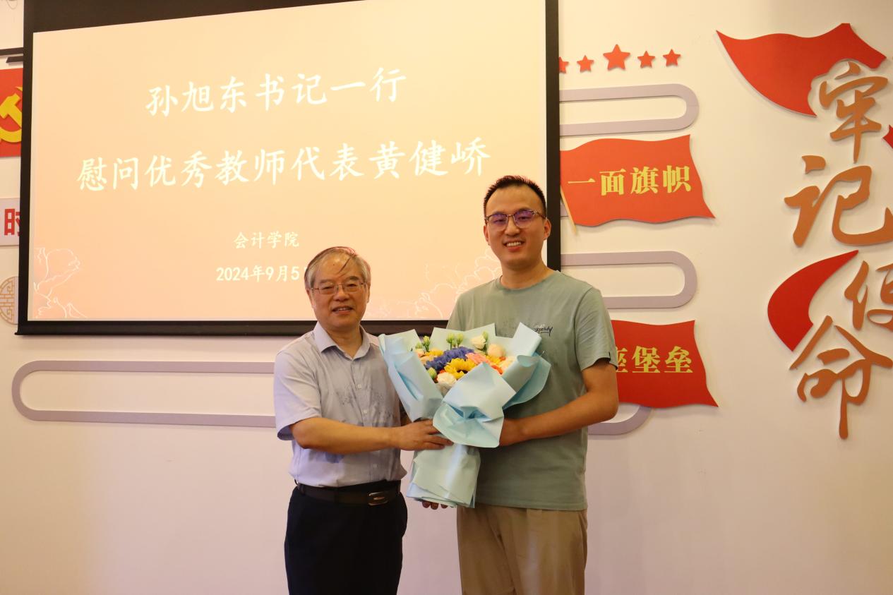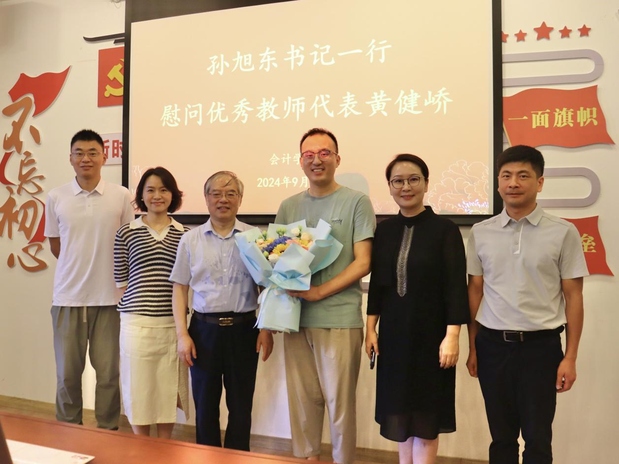 在第40个教师节来临之际,公司党委委员、纪委书记孙旭东来院慰问教师代表黄健峤。人事处朱胤、党校办胡高峰、公司领导班子成员参加了此次慰问活动。