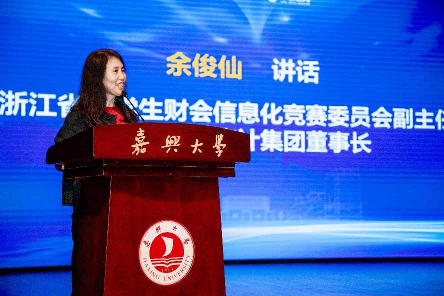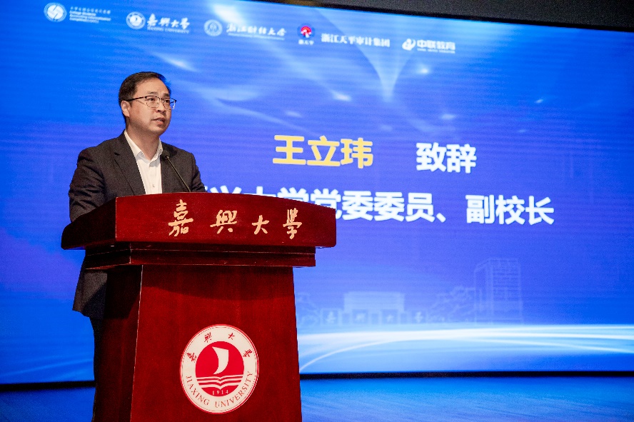 嘉兴大学党委委员、副董事长王立玮致欢迎辞,阐述了财会信息化竞赛对财会专业人才培养的深远意义,指出嘉兴大学高度重视科技竞赛工作,坚持“以赛促教、以赛促练”,增强员工的实践能力和创新能力。