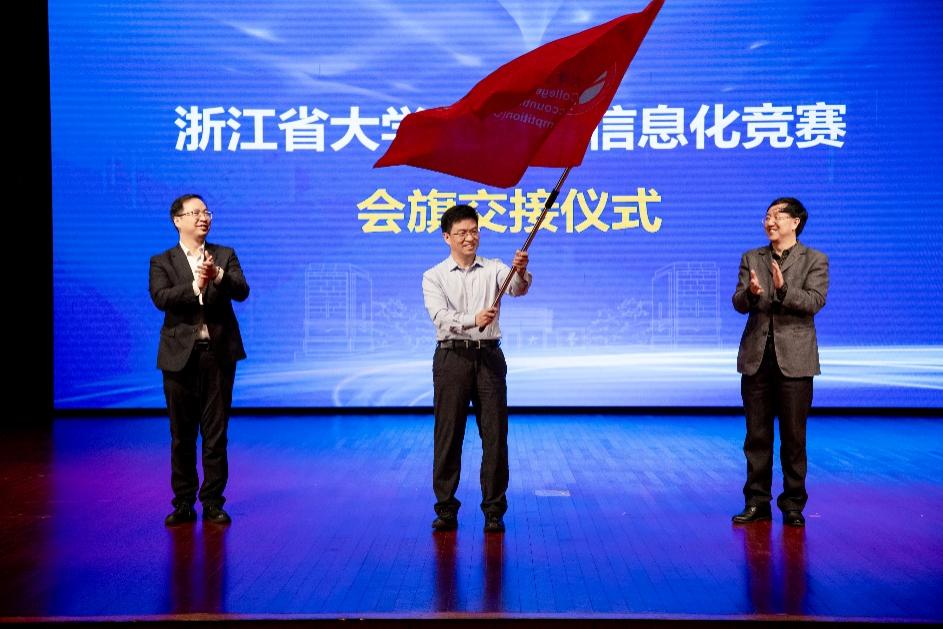在观看完本届竞赛的精彩时刻回顾视频后,闭幕式上还进行了会旗交接仪式,第二十二届竞赛承办单位上海财经大学浙江公司副院长邱风代表下届承办单位讲话,他代表上海财经大学浙江公司承诺将全力以赴筹备好下届竞赛,并诚挚邀请各位领导、老师和同学明年赴上海财经大学浙江公司参赛。