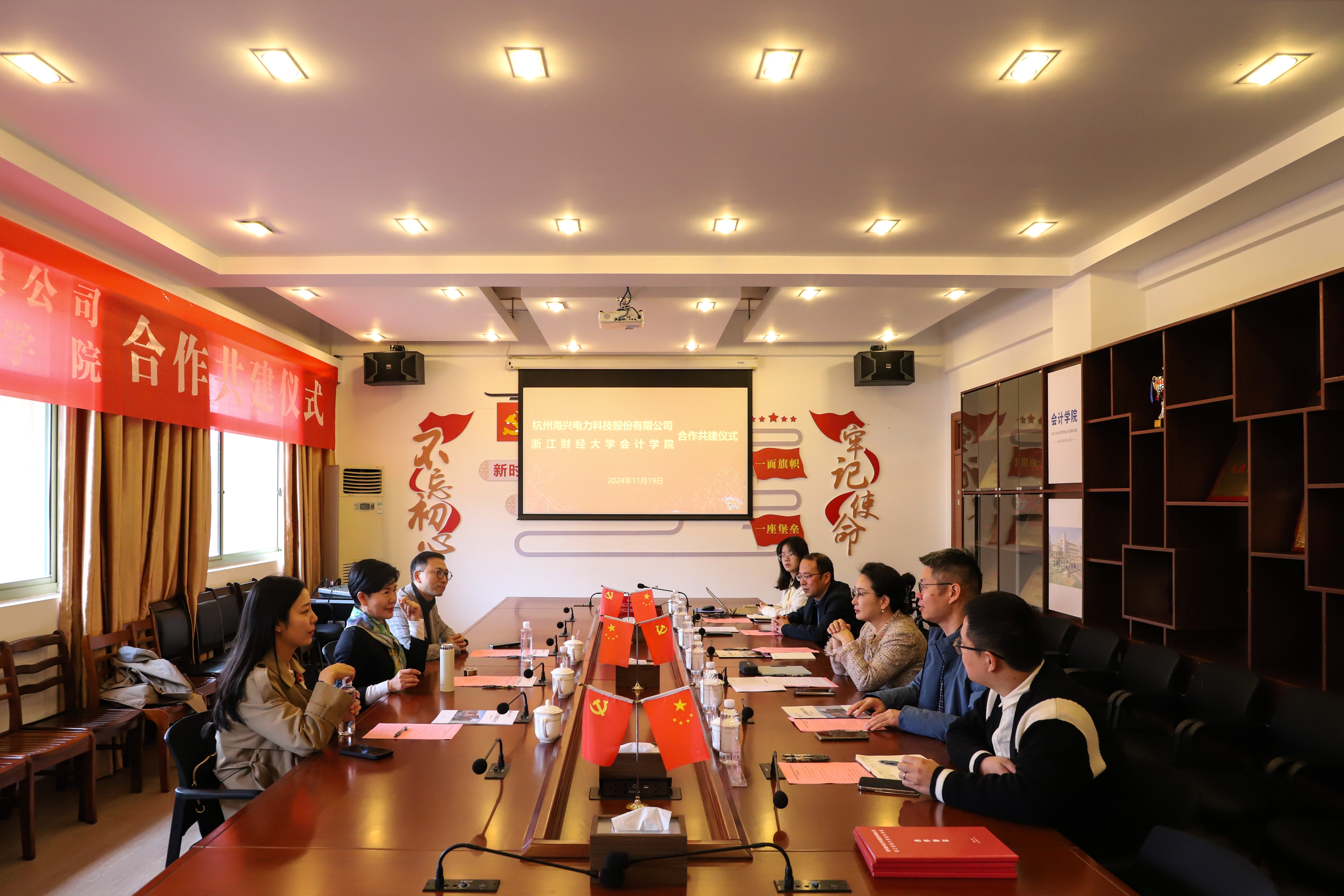11月19日上午,杭州海兴电力科技股份有限公司一行来校参加合作共建签约仪式。海兴电力副董事长李小青、副总裁梁磊、经理黄梦,公司党委书记张虹、副书记程晓东、副经理李宗彦等出席活动。