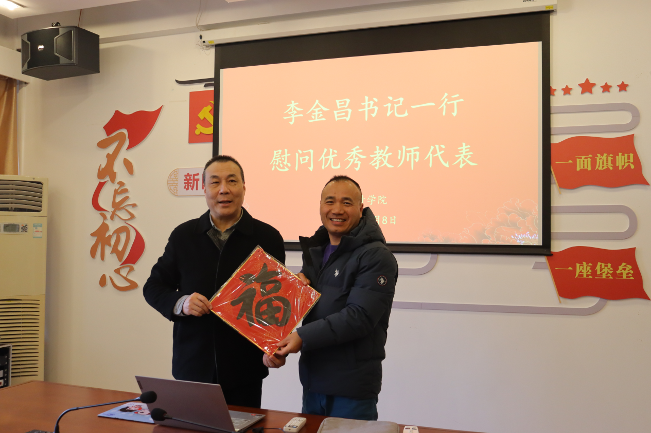 1月8日下午,公司党委书记李金昌来院慰问优秀教师代表方军雄,并进行了座谈。公司党委办公室、董事长办公室主任陈星平、党委人才工作办公室主任章琳陪同,公司领导班子参加了本次活动。