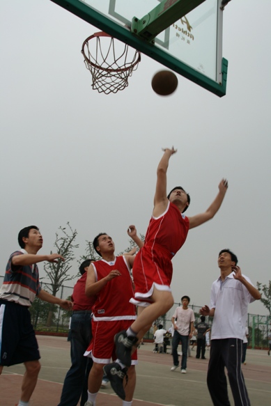 2009年5月12日下午,校第五届教职工篮球赛正式开战。公司篮球队被分在C组,第一场比赛迎战外国语队。外国语队实力较强,队员储备充足、体力好,为此我们赛前做了充分的思想准备,精心布置了防守队形和进攻套路。