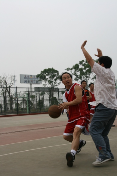可是,比赛刚一开始,对方气势很猛,连连得分,而我们却屡屡失利,结果第一节0:7落后。教职工比赛中,7分是不小的差距,想翻身并不容易。面对困难,我们没有急躁、更没有放弃,而是保持清醒、积极应对,制定了“巩固防守、加强进攻”的策略。所以,从第二节开始,我们就吹起了反攻的号角,郭化林老师视野开阔、积极助攻;邓川教师穿插跑动、步伐灵活;厉国威老师左冲右突、无人能挡;王韵老师高举高打、篮下频频得分。比分一点点拉近,对方越来越急躁,而我们却越打越有章法。第二节结束,我们以12:11领先!