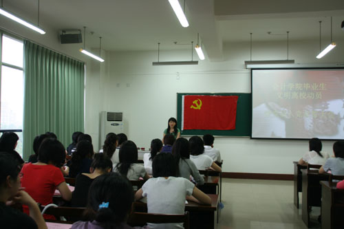 大会由吕丽老师主持,张红英老师发表了讲话。她指出“文明离校动员大会之所以在党员中召开,是因为党员在员工中起到的是先锋模范作用,员工党员是优秀员工的代表,具有表率作用,因此倡导文明离校希望也相信党员更加能够起到带头作用”,这番话无疑是对毕业生党员的一种鼓励,一些肯定,一份期许。