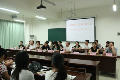 9月15日下午,公司在会计学楼303教室安排了专业介绍暨导师见面会。会计学大部分导师和2009级硕士研究生全部到会。会议由公司党总支副书记张红英主持。与会导师相继发言,向新生表示祝贺,同时鼓励新生做好规划,努力做一名优秀的研究生。最后研究生们也先后做了自我介绍并表示要珍惜时间、努力学习,不辜负家长和老师的殷切期望。(郑永。2009年9月17日。)