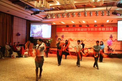 公司党委副书记朱永康代表公司向公司教职工致以亲切的问候和诚挚的祝福。永利yl23411官网经理汪祥耀回顾了2009年永利yl23411官网取得的成绩,并勉励全院教职工共同努力,在新的一年中再创佳绩、再续辉煌。党总支书记邵毅平对大家在过去一年里的辛勤工作和无私奉献表示衷心的感谢。随后迎新活动在优美的乐曲声中正式开始。表演者充分展示才艺,歌曲、小品、游戏等节目精彩纷呈、高潮迭起。张颖老师的演唱的《我爱你,中国》、郭德贵等老师自编自说的三句半、国际会计系表演东北秧歌、女教授集体表演的时装秀等节目特色鲜明、水平较高,深得老师们的喜爱,邱学文老师边唱边演的《冬天里的一把火》更是把晚会推向了高潮。
