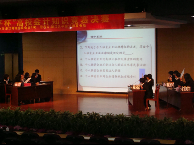 3月27日下午,2010“天平杯”高校会计知识竞赛决赛在公司学术一号报告厅隆重举行。这是一次大型的跨校会计知识竞赛。由公司作为主阵地,邀请浙江工业大学、浙江理工大学、浙江工商大学、杭州电子科技大学、宁波诺丁汉大学六所高校共同参与,是一场别具规模的会计知识饕餮盛宴。