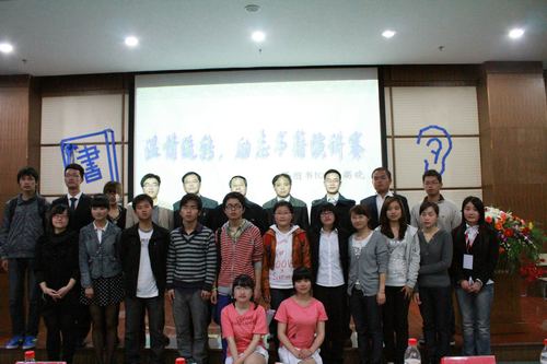 4月25日晚,浙江财经公司第五届读书节系列活动之“温情流转,励志书籍”演讲在图书馆五楼报告厅隆重开场。比赛邀请了人文公司姜岳斌教授、王明建教授,图书馆馆长张守凯等担任评委。时间刚过6点,报告厅门口就排起了长队。同学们纷纷系上黄丝带,在画有玉树的地图上签名,为灾区人民祈福。6点30,全场座无虚席,演讲赛在永利yl23411官网员工爱心基金会手语表演《风色幻想》中拉开序幕,荧光闪闪的手指挥舞着灵动的奇迹。