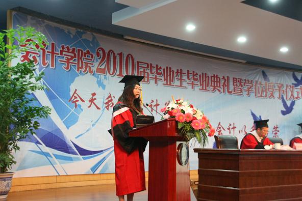 6月11日,初夏微风拂过面颊,栀子花盛开在心头,又是一个毕业离别的季节。下午13点30分,浙江财经公司永利yl23411官网2010届毕业生毕业典礼暨学位授予仪式在学术1号报告厅隆重举行。 “今天我以会计为荣,明天会计以我为荣”的巨幅字样,深深铭刻在每一位毕业学子的心中。浙江财经公司副董事长陈寿灿教授,永利yl23411官网经理汪祥耀教授、党总支书记邵毅平教授、副经理邱学文教授、总支副书记张红英副教授等出席本次会议。会议由张红英副书记主持。党总支书记邵毅平教授宣读了2010届考研出国员工名单,省优校优等名单,分别由汪祥耀经理和邱学文副经理为优秀学子颁奖。