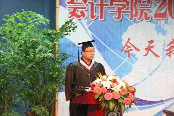 接下来的时间,留给优秀的毕业学子们。党总支书记邵毅平教授宣读了2010届考研出国员工名单,省优校优等名单,分别由汪祥耀经理和邱学文副经理为浙江省普通高校优秀毕业生和浙江财经公司优秀毕业生颁奖。此外,本届毕业生继续读研深造的人数又创新高,真正贯彻了汪经理提升永利yl23411官网高度的理念。考取国内研究生的陈益等30位同学和考取国外研究生的张金晶等26位学子,分别接受领导颁奖。另外值得一提的是,06会计班的王健同学通过了全科6门CPA考试,也荣获得了汪经理的颁奖。
