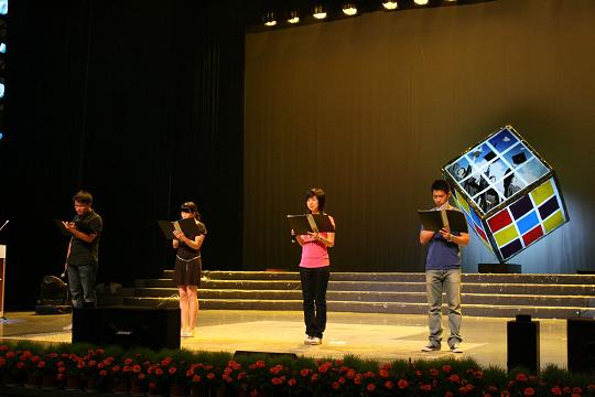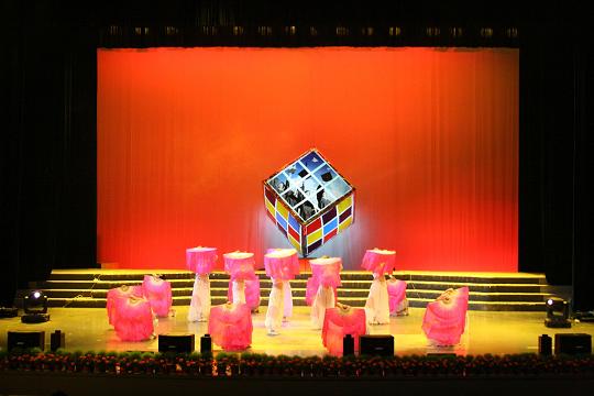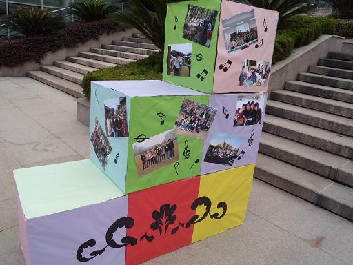 晚会开始前,策划精致的摇滚外场,一个巨大的木质魔方,贴满毕业生们满满的回忆,薄纸,透出的点点光亮,是他们如琥珀般纯净澄澈的青春;二十二个纸制魔方,印满财院的角角落落,是散落在舞台的记忆格,开启毕业生们四年难忘的点滴成长。沿着红地毯,旋转的魔方,激情的摇滚,引得路过的财经学子驻足欣赏,更将他们引入一场精彩纷呈的视觉盛宴。