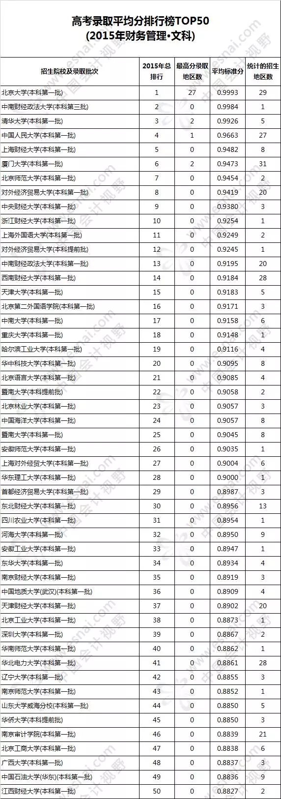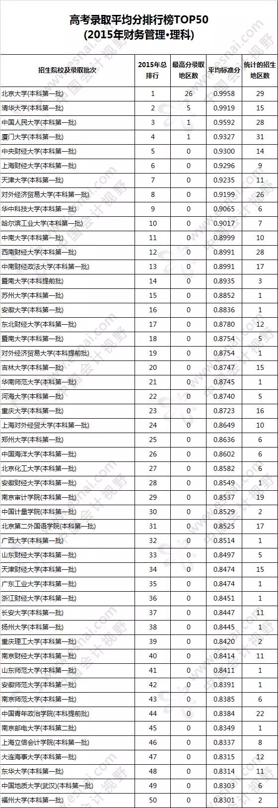 近日,中国会计视野网根据2015年各省市高考财务管理类专业录取分数线情况,发布了高考财务管理专业录取分排行榜。这是中国会计视野第四次发布类似排行榜。
